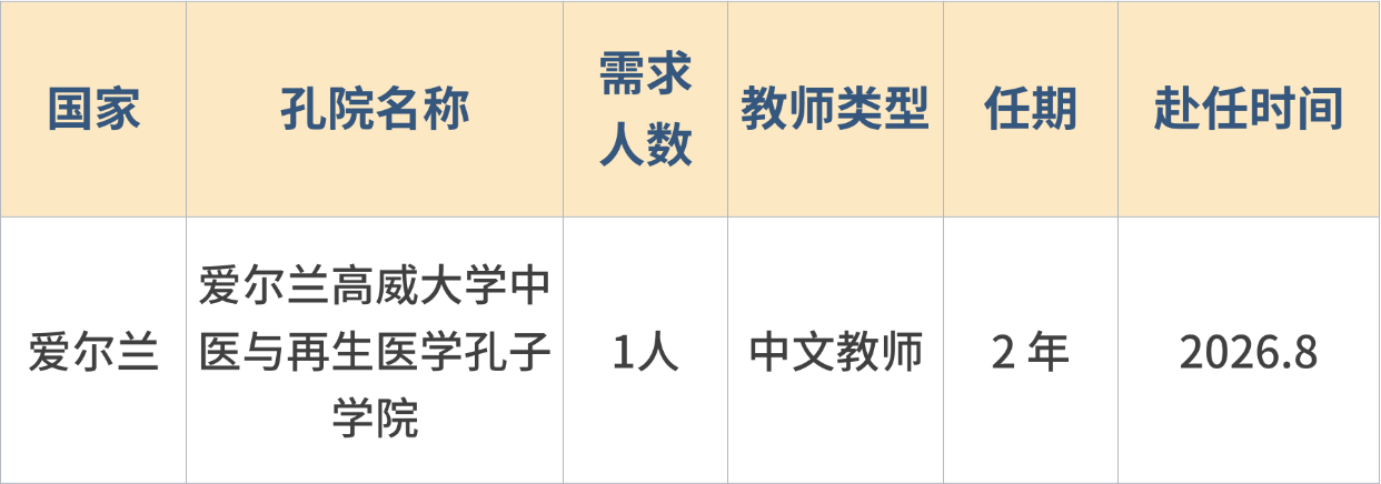 邮件主题命名方式:姓名+2026公派教师报名+岗位名,例“王强+2026公派教师报名+爱尔兰高威大学中医与再生医学孔子学院”